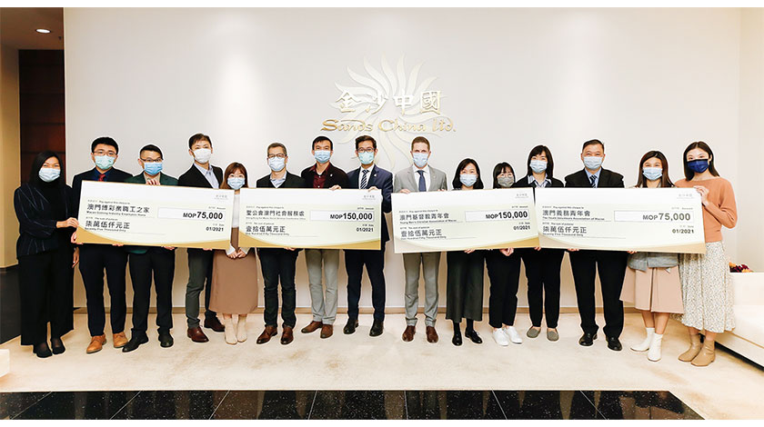 於 1月25日,金沙中國管理層在澳門威尼斯人舉行的支票捐贈儀式上,向四間負責任博彩社會服務機構代表致送支票。款項將用作支援社會服務機構推動負責任博彩活動,如負責任博彩親子家庭推廣日、親子財務管理活動、工作坊、培訓、分享會,以及製作負責任博彩短片等,受惠人士括金沙中國團隊成員。
