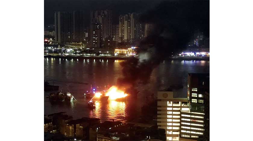 △海關監控小組於昨日下午六時三十三分,發現內港沙梨頭街市對開海面有漁船發生火警,隨即調派設有消防水炮的海關巡邏船及快艇到現場救援,並同時通知海事及水務局有關事件。海關總部於下午六時三十五分亦接獲999報案中心通知上述火警。