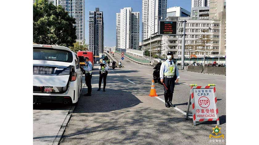 【特訊】 在警察總局統籌下,治安警察局持續進行「冬防行動2021」,確保本澳在歲晚及春節期間保持良好的治安環境。於2月6日至7日,澳門警務廳、海島警務廳、情報廳、交通廳及特警隊共派出97名人員,分別在北區、中區、新口岸區、氹仔市區及金光大道一帶截查可疑人士,並巡查了多間網吧及按摩場所,以預防及打擊各種不法行為;同時也在各區進行查車行動,以打擊醉駕藥駕等違法行為。