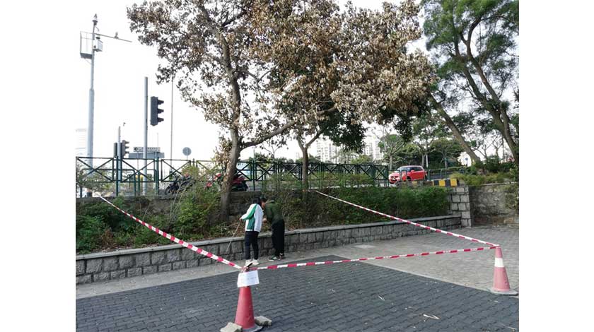 市政署早前發現位於氹仔湖畔花園一株陰香樹的枝葉出現不正常枯黃現象,經對樹木根部位置作詳細檢查,證實感染根腐病,且影響周邊的灌木,已派員對該樹施藥搶救及進行縮冠處理,經持續觀察該樹之病況未有改善。由於根腐病會讓樹木根部嚴重腐爛,可能使樹木缺乏支撐而突然倒塌,目前市政署已在周邊位置進行圍封。市政署持續跟進相關樹木之護理工作,若樹木病情惡化而影響公眾安全,將移除相關樹木,並對該處土壤進行消毒。