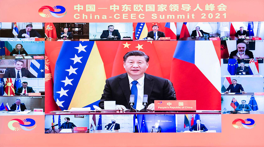 9日,國家主席習近平在北京以視頻方式主持中國-中東歐國家領導人峰會,並發表題為《凝心聚力,繼往開來 攜手共譜合作新篇章》的主旨講話。(新華社記者 李濤 攝)