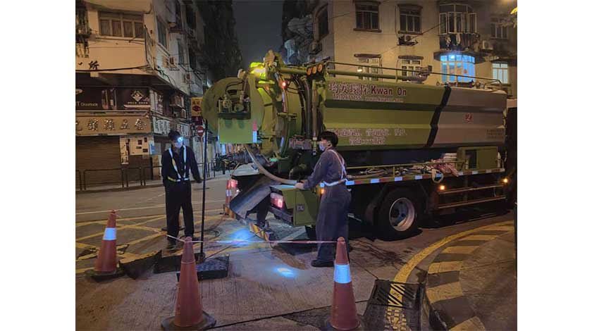 市政署於每年風雨季來臨前重點跟進經常淤塞的下水道狀況,確保渠網排澇效能正常,去年引入外判下水道影像記錄及清渠服務,藉以加強對渠網精準檢查、清淤及養護。首階段對經常淤塞的下水道展開工作,並已完成北京街與上海街部分內街之下水道清淤。