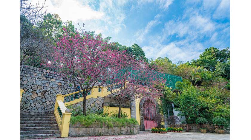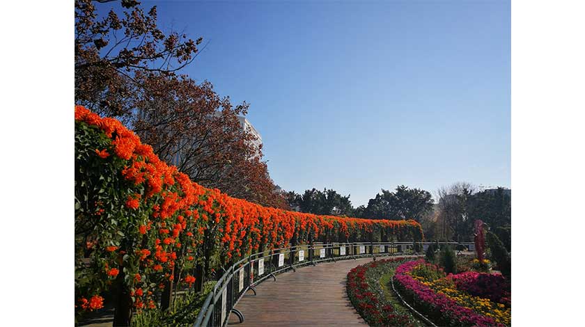 龍環葡韻種植的炮仗花一串一串高高掛,形成一個天然花幕,吸引遊人駐足欣賞拍照;馬交石炮台公園、紀念孫中山市政公園及水塘公園種植的桃花,花瓣小巧玲瓏,露出淡黃的花蕊;盧廉若公園、二龍喉公園、白鴿巢公園及大炮台公園種植的茶花嬌艷美麗,花形飽滿,還不時飄來陣陣花香。此外,各綠化帶種植的黃花風鈴木也絢麗燦爛,令人賞心悅目。