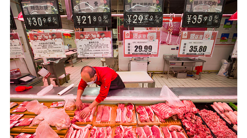 2月22日中央農辦主任、農業農村部部長唐仁健在北京召開的國新辦新聞發佈會上表示,去年以來,中國採取了多項措施支持恢復生豬產能,穩定生豬生產和市場供應,截至2020年底,生豬存欄已經恢復到常年的92%以上,雖然春節前後價格有所上漲,但上漲幅度並沒有前期那麼大,隨著新增的生豬產能陸續兌現為豬肉產量,豬肉市場供應最緊張的時期已經過去,後期供需關係將會越來越寬鬆。(中新社記者 張雲 攝)