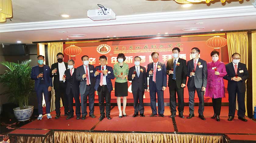 澳門房地產聯合商會昨邀請立法會主席高開賢、中聯辦公室經濟部副部長朱宏、外交部駐澳門特派員公署辦公室副主任陳洪周等嘉賓及會員出席新春團拜酒會。