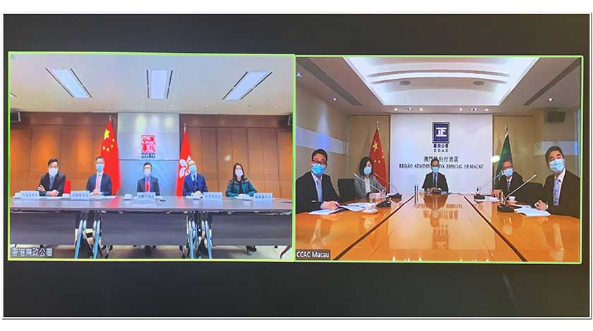二人亦就大灣區及粵港澳三地的廉政建設合作進行討論和交流。參加視像會議的還有澳門廉署助理專員兼反貪局局長歐陽湘、辦公室主任陳彥照,以及香港廉署執行處首長丘樹春等。