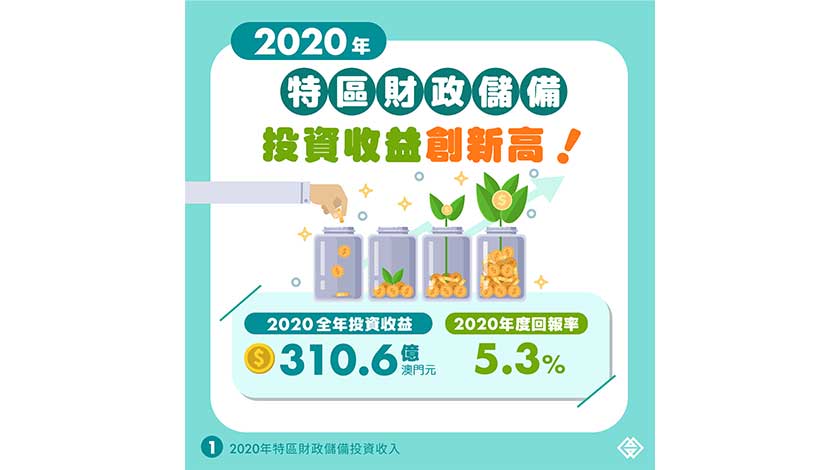 【特訊】在2020年,澳門特區財政儲備錄得310.6億(澳門元,下同)投資收益,年度回報率為5.3%,以金額計為歷年最高。過去五年,財儲的平均年回報率為3.1%,相較同期的平均年度通貨膨脹率為2.0%。