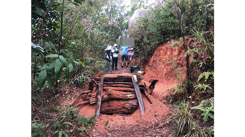 【特訊】市政署人員於上月廿七日上午在路環叠石塘山進行恆常山林巡查期間,發現有人非法挖掘山泥破壞山體,於步行徑上搭建單車跳台,被破壞的山體面積近十平方米。市政署人員已即時制止違法行為,並對違法者開展檢控程序。