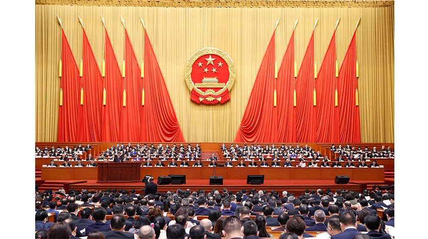 3月8日,十三屆全國人大四次會議在北京人民大會堂舉行第二次全體會議。最高人民法院院長周強作最高人民法院工作報告。(中新社記者 盛佳鵬 攝)