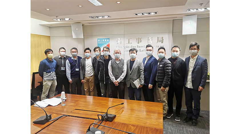 【特訊】澳門演藝娛樂設備商會骨幹成員一行早前分別拜訪勞工事務局及警察總局,向兩局介紹商會的宗旨及溝通有關過界勞工的事宜。獲勞工局局長黃志雄、副局長陳元童、代副局長陳俊宇,5名部門主要負責人,以及警察總局長助理劉運嫦,治安警察局廳長李志輝等4名部門主要負責人接見。