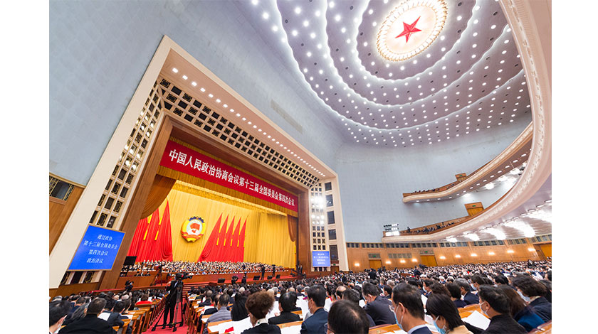 3月10日,中國人民政治協商會議第十三屆全國委員會第四次會議在北京人民大會堂舉行閉幕會。(中新社發 王達 攝)