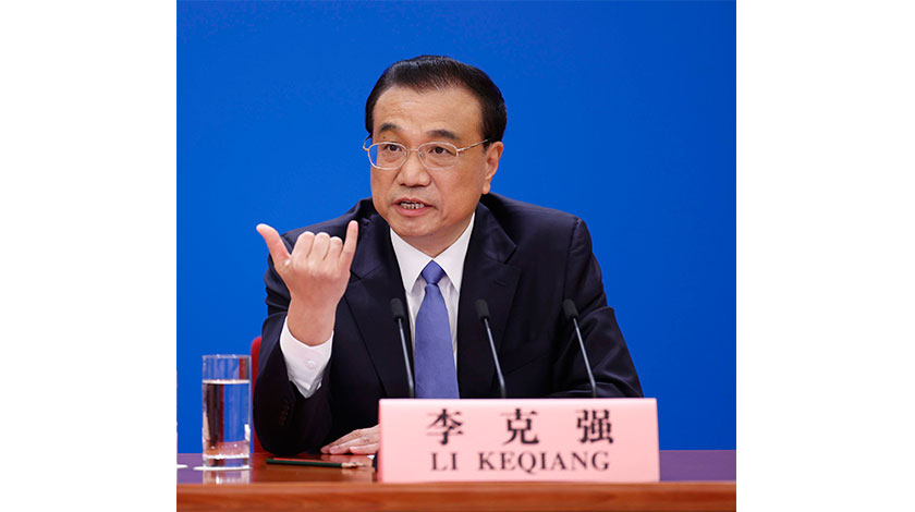 11日,中國國務院總理李克強在北京人民大會堂出席記者會並回答中外記者提問。(中新社記者 劉震 攝)