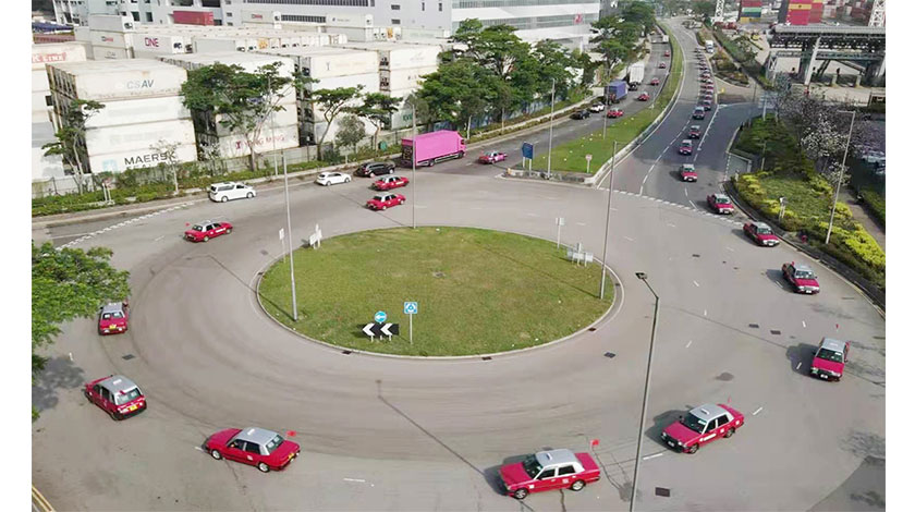 3月14 日上午,香港“的士司機從業員總會”支持全國人大通過完善香港特區選舉制度的決定,堵塞制度漏洞,全面落實“愛國者治港”原則。安排100部的士分別在港、九、新界各區進行的士大巡遊。每部的士分別掛上國旗及貼上“支持愛國者治港”和支持香港"完善選舉制度”的海報,浩浩蕩蕩巡游。(香港中通社)