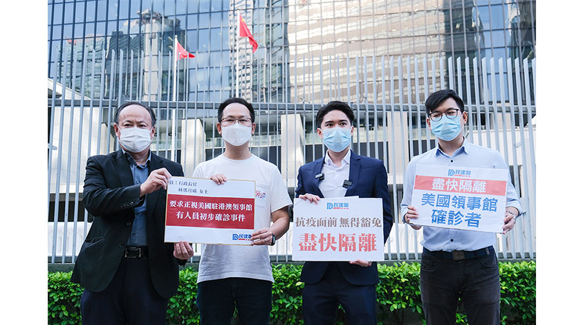 當日下午,香港政團民建聯成員到政府總部外請願,促請特區政府立即與美領館方面嚴正商討,要求領事館負責人正視事件的嚴重性,也要求兩名初步確診人員要配合特區政府工作。