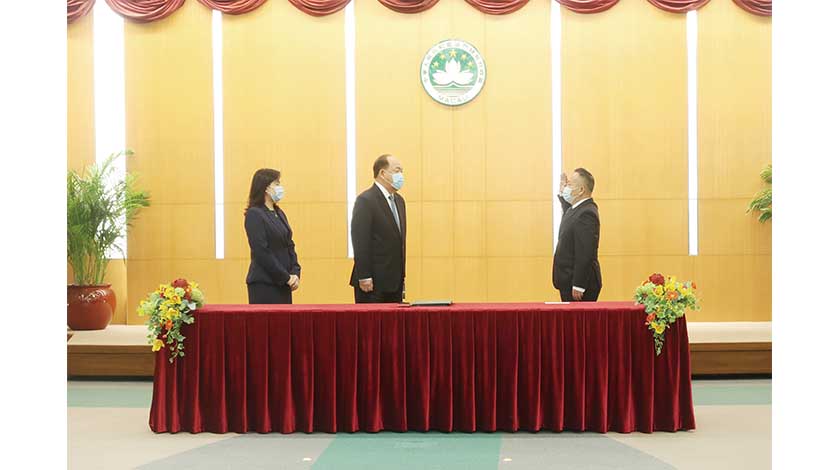 就職儀式昨午假政府總部多功能廳舉行,由賀一誠監誓和簽署委任狀,委任期為一年,自今年三月十五日起,為期一年。