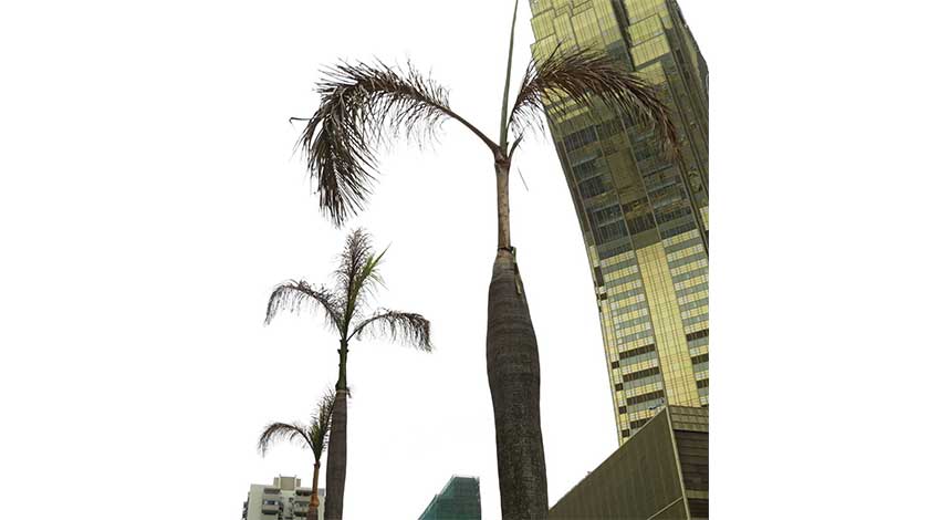 此外,位於友誼廣場側的四株大王椰子樹,樹木頂端的莖部近年越趨變幼,老熟葉少而稀疏且黃化,頂芽嫰葉小而細,整體呈現衰弱徵狀。經持續觀測,樹木狀況未見好轉,故計劃有序地移除有關長勢不良的樹木,並改善樹穴環境後重植新樹。