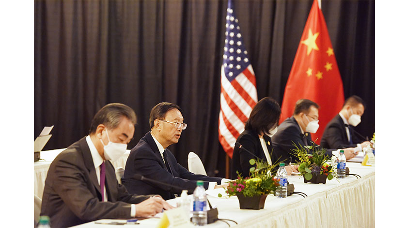 圖為楊潔篪在中美高層戰略對話開場白中闡明中方有關立場。(中新社記者 陳孟統 攝)