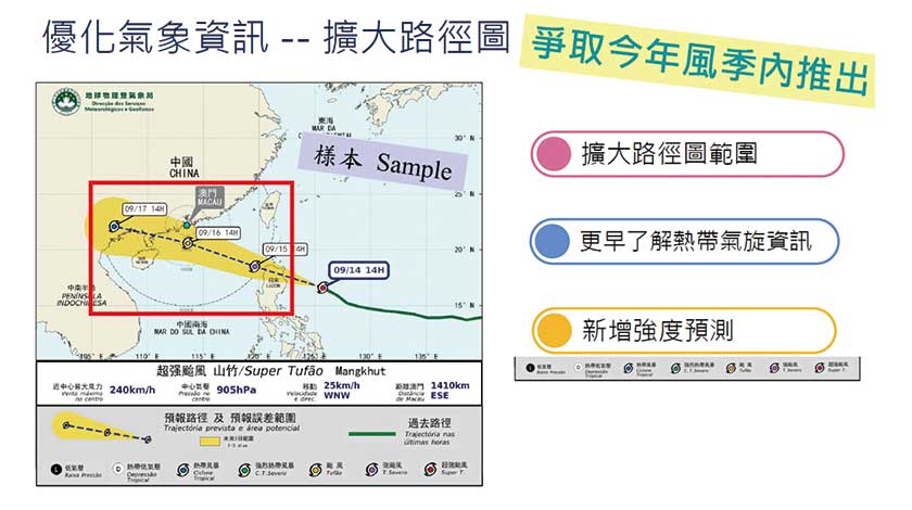 今年,氣象局將加強氣象提示信息發布,擴大熱帶氣旋路徑圖範圍,讓市民更早了解熱帶氣旋的資訊,也新增強度預測。有記者提出,氣象發熱友一向採用香港天文台的預測圖來預測熱帶氣旋,本澳氣象局今年優化路徑圖後,能否滿足氣象發熱友的需求?