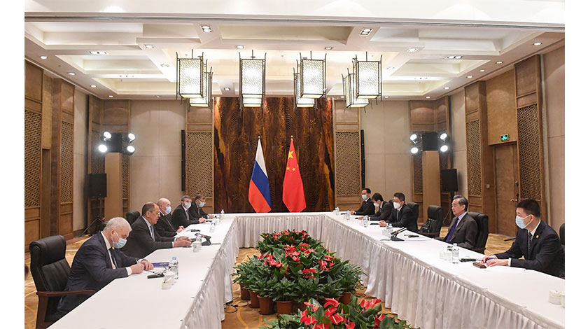 3月23日,國務委員兼外長王毅在廣西桂林同俄羅斯外長拉夫羅夫舉行會談。(新華社記者 陸波岸 攝)