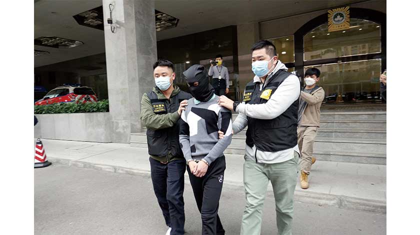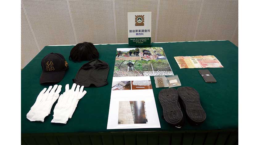 至前日下午,羅姓男子經關閘入境時被截獲,司警在他身上搜得相同的波鞋,手套、假髮、帽和頭套,多支電鑽鑽咀等懷疑作案工具。羅拒絕合作提供資料。