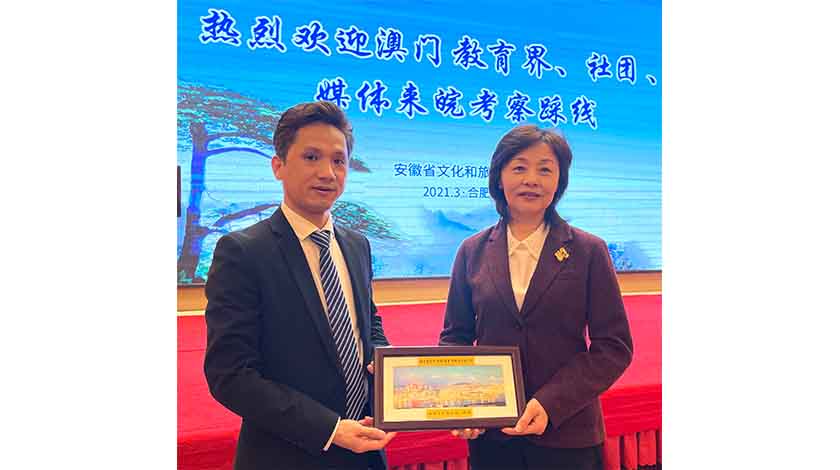 考察團日前傍晚由珠海乘機抵達合肥市,獲安徽省文化和旅遊廳副廳長王靖等設宴招侍,有關領導並向考察團介紹當地的旅遊資源。王靖表示,歡迎澳門教育界、社團及傳媒代表等來到安徽省體驗文旅活動,希望今次活動會令到各人有意想不到的收穫。