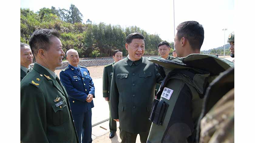 3月24日,中共中央總書記、國家主席、中央軍委主席習近平到武警第二機動總隊視察。這是習近平察看部隊訓練情況。 新華社記者 李剛 攝