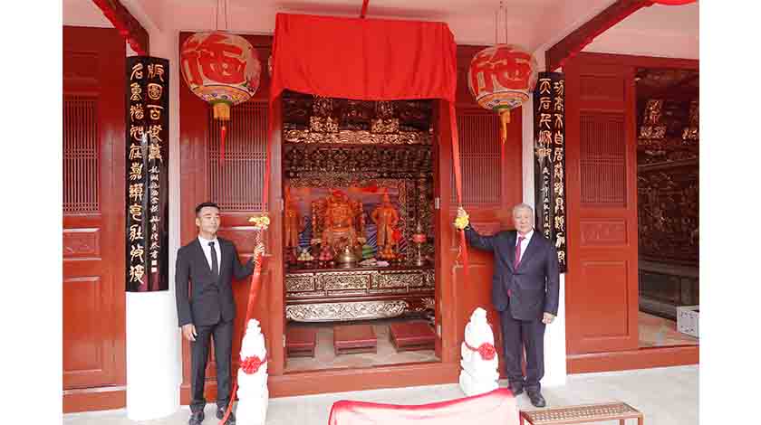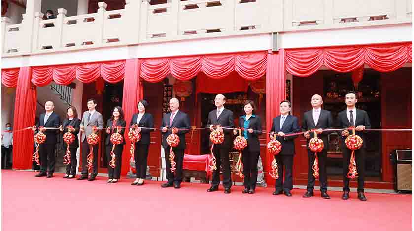 【特訊】3月27日上午,澳門路環疊石塘山媽祖文化村天后宮旌旗招展、鑼鼓齊鳴,施琅將軍館落成揭幕剪綵儀式隆重舉行。全國政協副主席何厚鏵,澳門中聯辦副主任嚴植嬋,外交部駐澳門特派員公署特派員劉顯法,澳門社會文化司司長代表、司長辦公室主任何鈺珊,澳門文化局局長穆欣欣,澳門旅遊局代局長許耀明,澳門基金會行政委員會委員黎振強,澳門中華媽祖基金會主席代表顏奕真,全國政協委員、澳門中華媽祖基金會執行主席陳明金,全國人大代表、澳門立法會議員、澳門施氏宗親會永遠榮譽會長施家倫,澳門施氏宗親會會長施少峰等人出席主禮,澳門中華媽祖基金會董事兼秘書長吳聯盟主持儀式。澳門中華媽祖基金會董事兼天后宮管委會主任陳明確,澳門施氏宗親會理事長施明川、監事長施長利,以及兩會有關負責人、社會友好人士、澳門施氏宗親等逾400人,在做好防疫措施情況下參加活動。