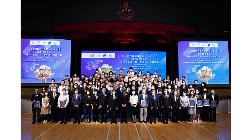 另外,“紀念《澳門特別行政區基本法》頒佈二十八周年之我與《憲法》和《基本法》演講比賽”,昨日假聖保祿中學學校禮堂決賽。該比賽由澳門基本法推廣協會、法務局、教育及青年發展局和市政署聯合主辦,目的旨在提升青年及學生對國家及本地法律的學習興趣,增強法治觀念,加深對國家的認同感和歸屬感,以及瞭解相關法律的實施對促進澳門社會繁榮穩定的重要作用。