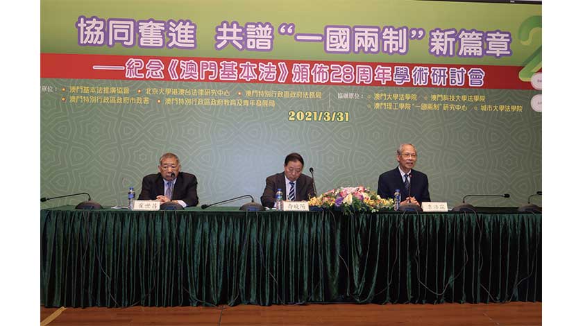研討會昨邀請行政法務司司長張永春、澳門中聯辦副主任張榮順、外交部駐澳特派員公署特派員劉顯法等嘉賓出席,以及邀請內地、本澳等地學者、就特區“一國兩制”理論實踐作專題探討。
