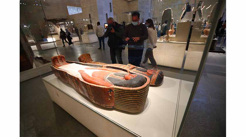 4月4日,人們在位於埃及首都開羅的埃及文明博物館參觀。當日,埃及文明博物館正式面向公眾開放。該館綜合展示了埃及各個歷史時期的文化風貌,是一座集文化、教育、創新和研究的綜合場館。新華社記者 隋先凱 攝