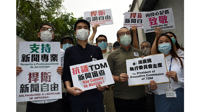 新澳門學社的聲明 (https://reurl.cc/Q7GXlo) 表示,百分百公帑注資的澳廣視最近爆出打壓新聞自由的爭議。執行委員會向葡文新聞部發出新的編輯要求,禁止員工傳播與政府政策不同的資訊和觀點。此舉剝奪傳媒監察政府、報道真相的天職,記者將淪為政府宣傳工具。據報至今,已有六名記者毅然辭職。
