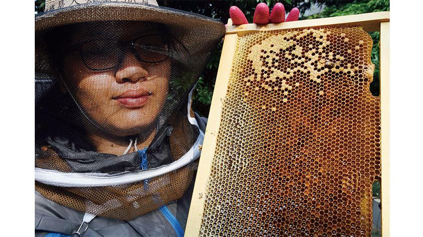 蜂農全副武裝採收蜂蜜。(香港中通社圖片)