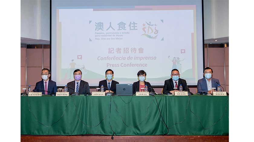 旅遊局與「澳人食住遊」工作小組成員,昨假旅遊局局長文綺華、副局長許耀明、澳門旅遊商會理事長張健中、澳門旅行社協會理事長志賀邦郎、澳門旅遊業議會會長胡景光及理事長黃輝等,假世貿中心蓮花廳向約一百五十名業界及傳媒,介紹「澳人食住遊」計劃內容。