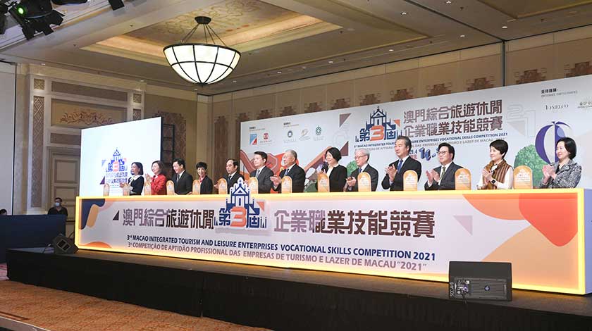 另外,勞工局與工聯合辦的「二○二一第三屆澳門綜合旅遊休閒企業職業技能競賽」昨假康萊德酒店展開。六間博企共派出一百三十五人參與博彩娛樂、酒店綜合服務和世界美食之都三大項共七類的職業技能競賽。