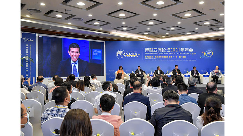 4月19日,海南博鰲,博鰲亞洲論壇2021年年會舉行『金融開放與金融合作』分論壇。圖為高盛集團全球總裁兼首席運營官溫澤恩通過視頻連線方式發言。(中新社記者駱雲飛攝)