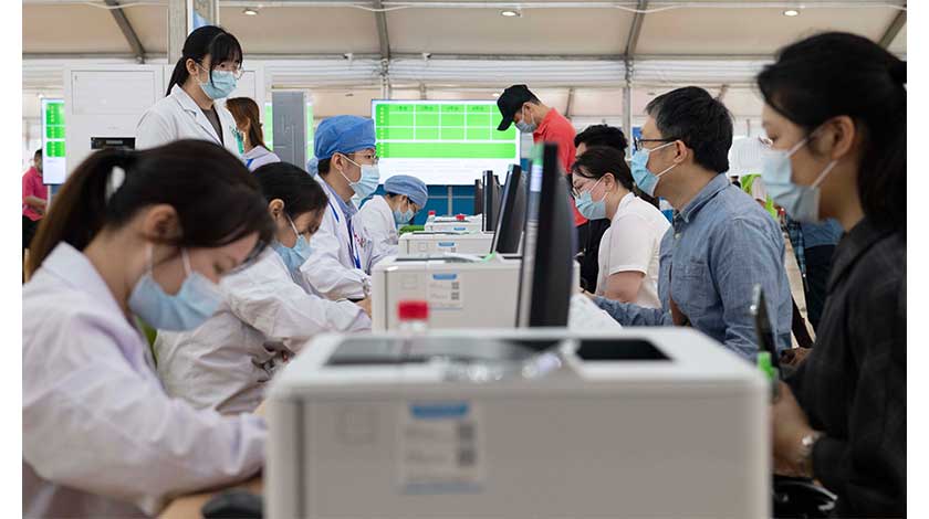 廣東省衛生健康委員會28日稱,該省4月27日接種新冠病毒疫苗123.48萬劑次,成為中國內地首個單日接種量過百萬的省份。截至4月27日24時,廣東累計接種1948.45萬劑次,累計接種1589.71萬人,共有366.97萬人完成全程(2劑)接種。圖為4月27日,民眾在廣東省廣州市天河體育中心新冠疫苗臨時接種點登記區登記、確認個人信息。(中新社記者陳楚紅攝)