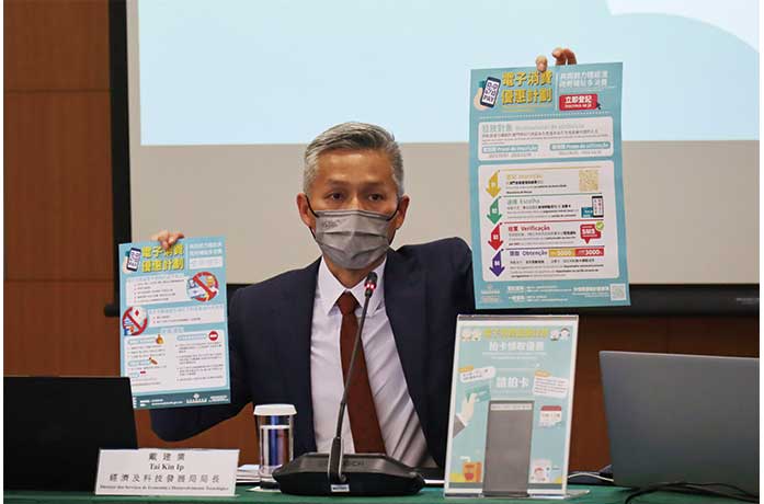 行政會昨午宣布完成討論《電子消費優惠計劃》行政法規草案,將今日刊政府公報、明日生效。經濟及科技發展局、澳門金融管理局和社會工作局隨後舉行聯合發佈會,交代計劃的登記、領取及使用詳情。