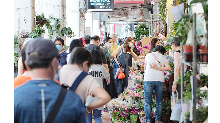5月7日,今個星期日為母親節,不少市民到旺角花墟購買鮮花準備向母親表達愛意。在疫情影響下,花墟沒有以往的絡繹不絕,有花店商人冀薄利多銷。(香港中通社)