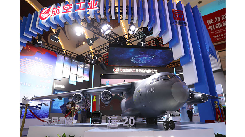 5月10日,2021年中國品牌日活動在上海舉行。圖為『運20』模型亮相。(中新社記者張亨偉攝)