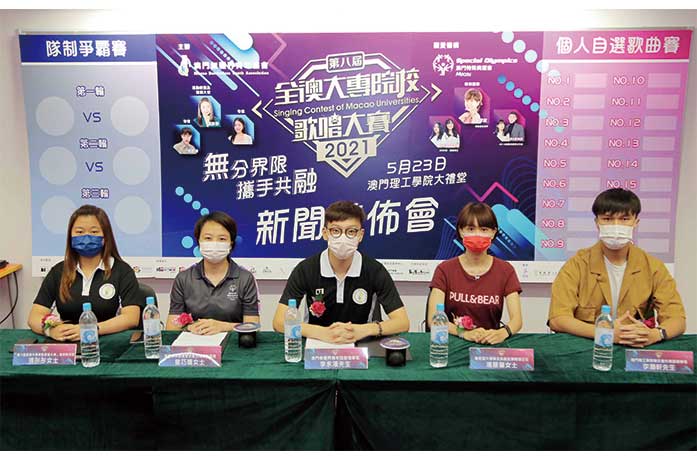 據介紹,今年將會繼續由澳門特殊奧運會擔任本活動之關愛機構,以「無分界限‧攜手共融」為主題,活動統籌及推廣大使張彤彤鼓勵青年人在追夢的路上,更要學懂用愛及行動關心社會,傳達社會共融精神。「第八屆全澳大專院校歌唱大賽」於本月二十三日晚上六時正於假澳門理工學院大禮堂舉行,屆時六間院校代表將角逐多個團體及個人獎項。當日活動邀請到本澳著名創作歌手陳慧敏;上屆金銀獎得主馮梓雯、高明蔚;2019年校園班霸得主代表陳宜、歐廸朗到場表演,更有澳門特殊奧運會學員、各院校代表及推廣大使張彤彤共同 演唱澳門特殊奧運會慈善專輯內的歌曲《飛》,可謂別具意義。賽事門票收益將不扣 取成本,全數撥捐澳門特殊奧運會作關愛用途。