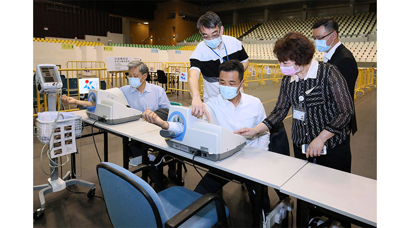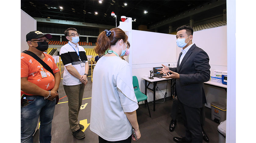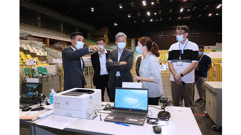 視察期間,衛生局管理層詳細聽取了接種站醫護人員的介紹,了解接種站內的安排和運作等;並詳細檢視疫苗的接種流程,包括登記、取籌、量血壓、諮詢評估、接種疫苗、現場急救及保安部署等。羅奕龍局長對現場工作人員所作的努力予以肯定及鼓勵,並即時對現場的措施和設備進行測試,包括血壓計量器、取籌機是否操作暢順等,亦與現場工作人員就場館各項設置是否安全等,共同商討解決方法。