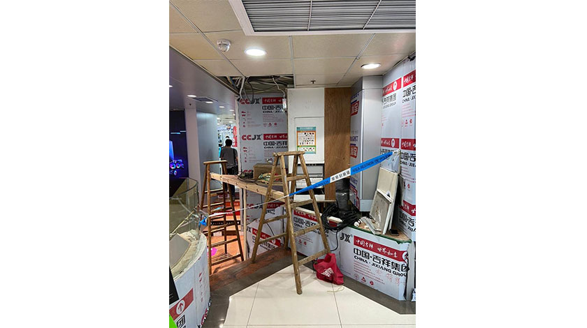 【本報訊】祐漢市場街一商場昨發生嚴重工業意外,一名裝修工人在進行天花板位置的水管維修工作時,突然從一米多高的工作台上墜地受傷,送院搶救後證實不治。司警事後接手調查案件,死因有待檢驗核實。勞工局對意外表示高度關注,事後也派員到現場調查。