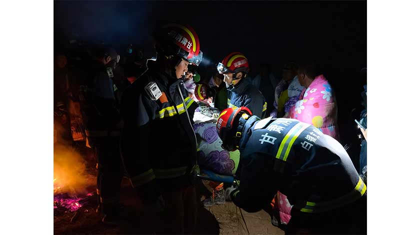 甘肅消防救援人員在白銀景泰馬拉松事故現場進行救援。中新社發甘肅消防供圖