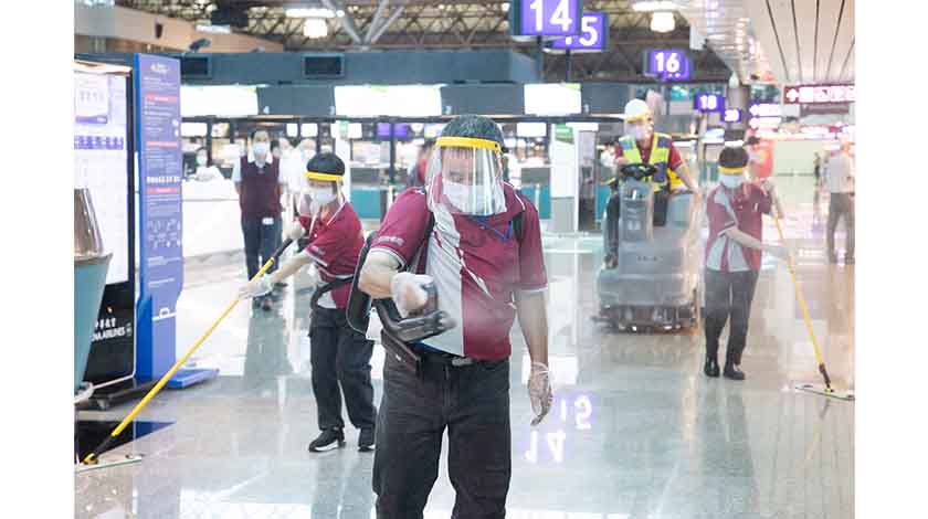 台灣桃園機場再度進行深度消毒。(香港中通社)