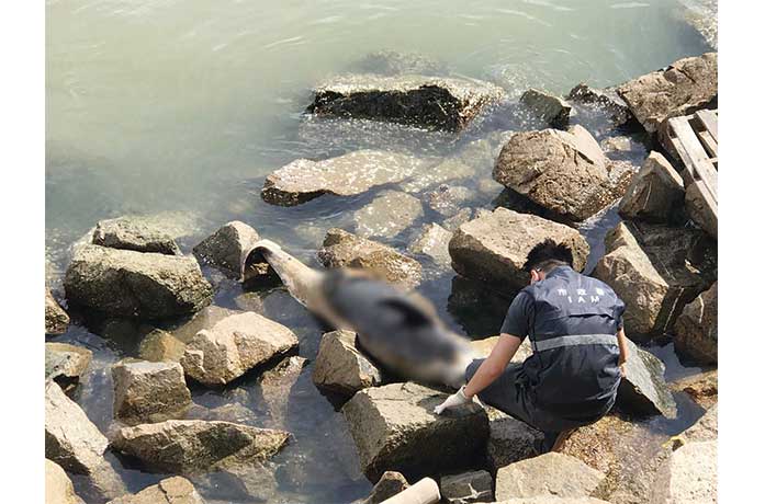 【特訊】市政署昨日上午接報,於黑沙龍爪角海濱路對開石灘發現一海豚屍體,經初步鑑定為江豚。