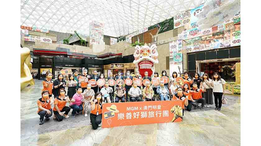 「樂善好獅旅行團」啟動禮日前於美獅美高梅視博廣場舉行,出席嘉賓包括澳門特別行政區政府社會工作局局長韓衛、衛生局局長羅奕龍、旅遊局執照及監察廳廳長鍾卓業、澳門明愛總幹事潘志明、澳門明愛服務總監袁志海、澳門明愛副服務總監鄭月嬋、美高梅總裁、首席戰略及財務官馮小峰,以及美高梅人力資源行政副總裁余婉瑩。「樂善好獅旅行團」首批參加者共25人,一眾嘉賓與團友寒暄和合照後,便一起欣賞「空中海洋SHOW」。團友隨後在美獅美高梅的餐廳享用午餐,及後前往參觀路氹城的景點,度過愉快的午後時光。
