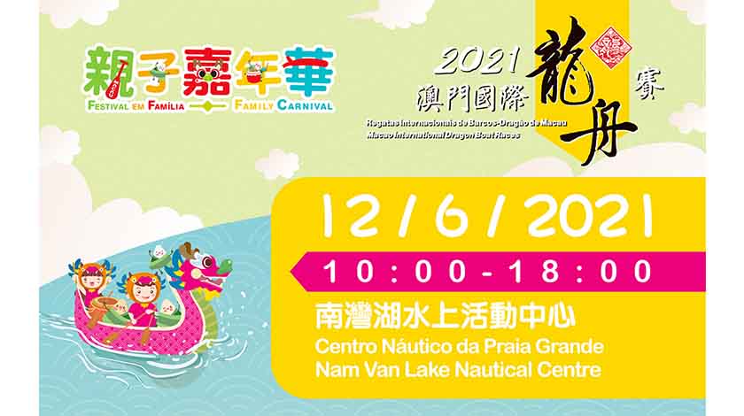 【特訊】由體育局及中國澳門龍舟總會主辦,市政署及行政公職局協辦的“2021澳門國際龍舟賽”活動將於本年6月12日至14日在南灣湖水上活動中心舉行。為增加活動氣氛,將於12日(星期六)早上10時至下午6時,在南灣湖水上活動中心舉行2021澳門國際龍舟賽-親子嘉年華,活動將以龍舟競渡為主題,無需預約入場,歡迎廣大市民及旅客參與。