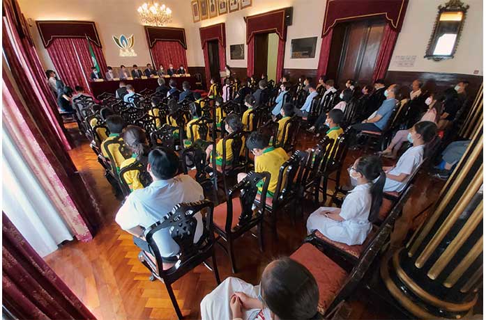 【本報訊】昨早,一群小學生出席市政管理委員會每月公開平常會議。當中,多名小學生提出不同問題:氹仔運動場一帶常常交通擠塞,相關的工程何時完結?觀音像海濱休憩區受到歡迎,當局會否增加同類休憩區?疫情過後,失業率有否機會轉變?
