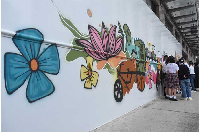 【本報訊】為推動社區藝術發展、提升生活圈藝術氛圍及活化社區,街總於其社服大樓「迎聚廊」外牆新添一段長約十七米的街頭壁畫,冀在社區建造一個新興打卡熱點。