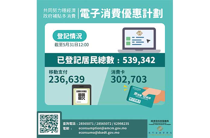 計劃自5月7日起接受網上登記,截至昨日中午12時,已有近54萬名居民完成登記,當中約23.7萬人選擇“移動支付”,約30.3萬人選擇“消費卡”。